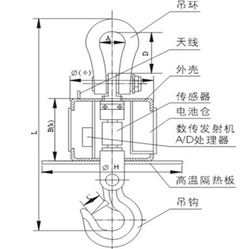 無線耐高溫電子吊秤采用獨特的熱態(tài)傳感器, 秤體采用全鋼外殼,加裝高溫隔熱板,能有效阻擋熱源輻 射。HKC耐高溫電子吊秤產(chǎn)品搭配無線儀表,無線傳輸距 離可長達200m。耐高溫電子吊秤直觀安全,功能先進適用 于特殊規(guī)定量程范圍內(nèi)的稱重計量。無線電子吊秤由秤體和儀表兩部分組成。